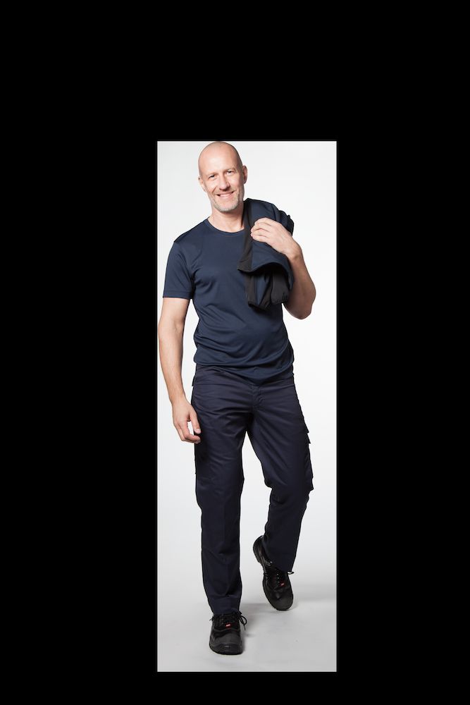 Tekninen t-paita, valmistettu SpunDye-teknologialla värjätystä polyesteristä. Pyöreä kaula-aukko, jossa vahvistettu joustinneulekaulus. Tekninen materiaali kuljettaa kosteuden nopeasti pois iholta. Sen ansiosta vaate kuivuu nopeasti ja pitää käyttäjänsä kuivana ja raikkaana koko päivän. Ei kutistu eikä rypisty. 100 % polyesteriä, 130 g/m2, interlock-neulosta.