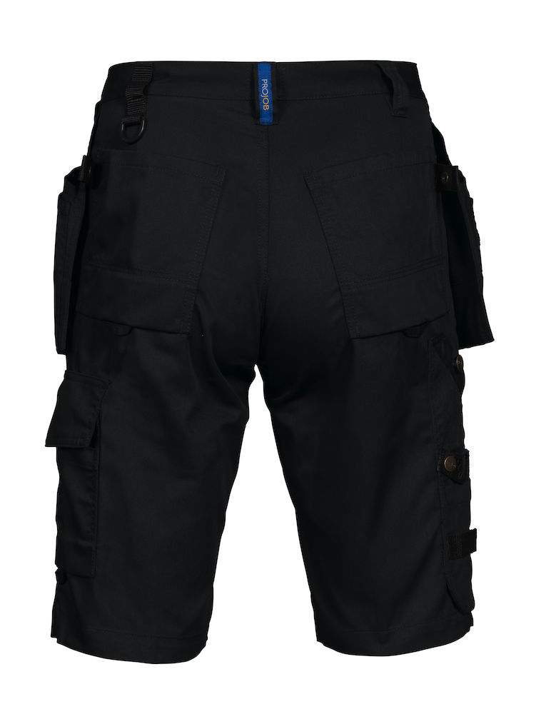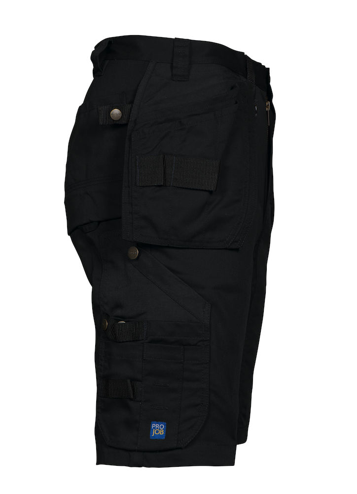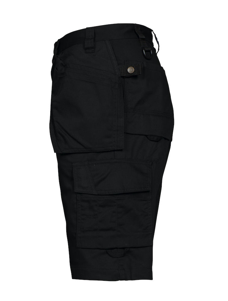 Kestävät shortsit polyesteri-puuvillasekoitteesta. Kaksi riipputaskua, jotka voidaan työntää sivutaskuihin. Toisessa riipputaskussa on lisätasku ja toisessa työkalulenkkejä. Riipputaskut on vahvistettu 100 % Corduralla. Syvät sivutaskut, joissa tilaa naulataskuille. Reisissä lisävahvikkeena kaksinkertainen kangas. Reisitaskussa paikat puhelimelle, kynälle ja työkaluille. Kaksi säädettävää vasaralenkkiä ja kaksi D-rengasta. Mittatasku, jossa työkalutasku ja puukkonappi. Taka- ja reisitaskuissa on lenkit Inbag-taskuille.