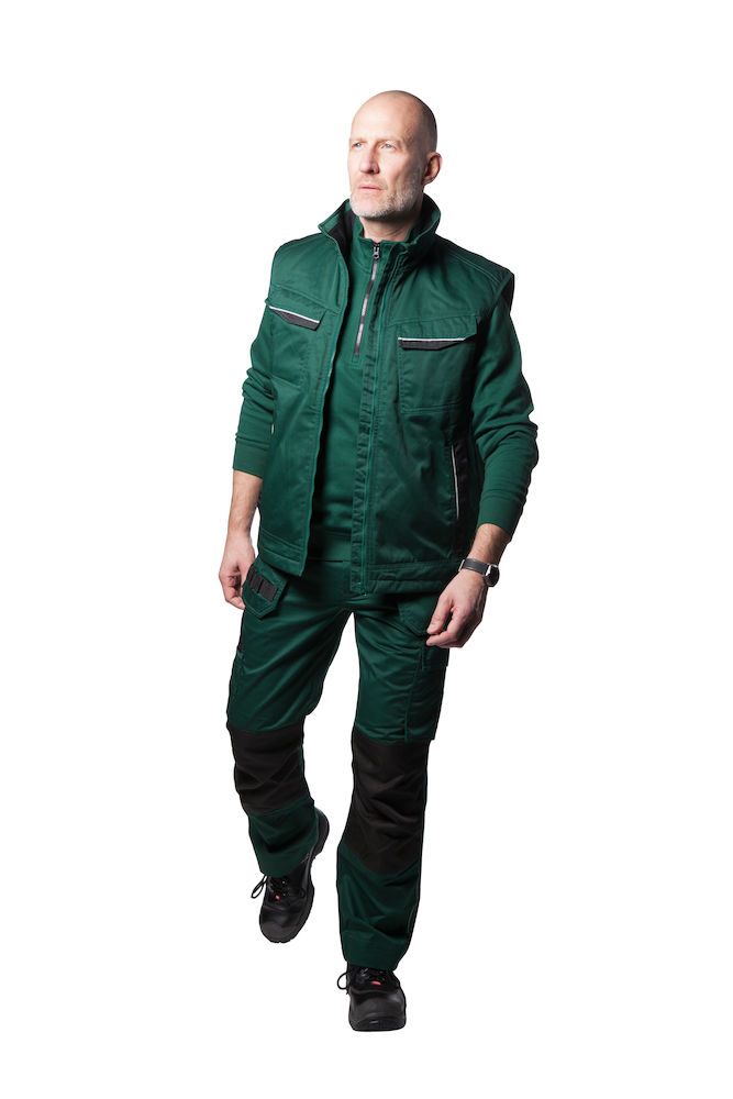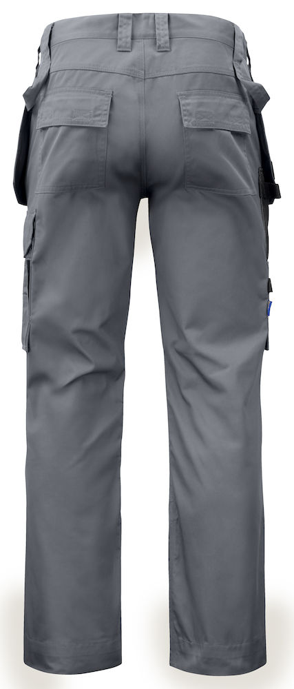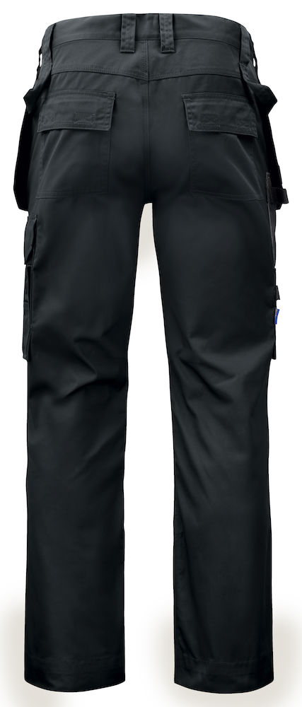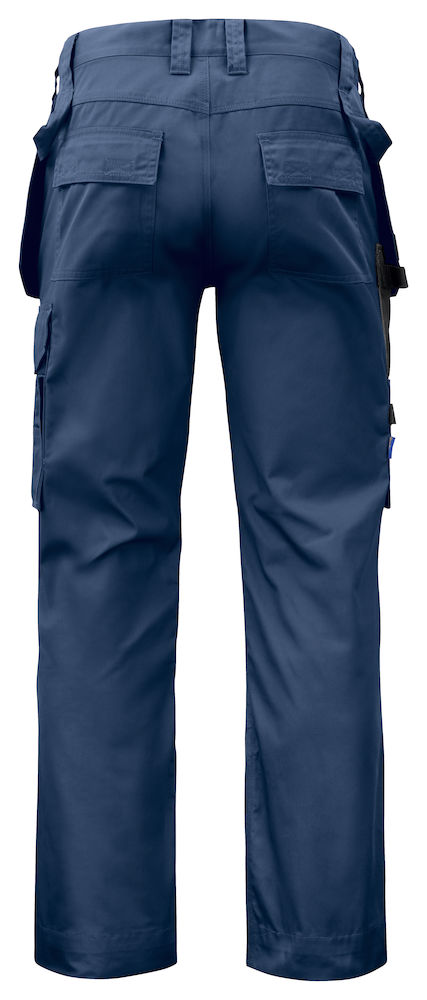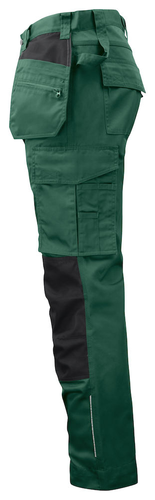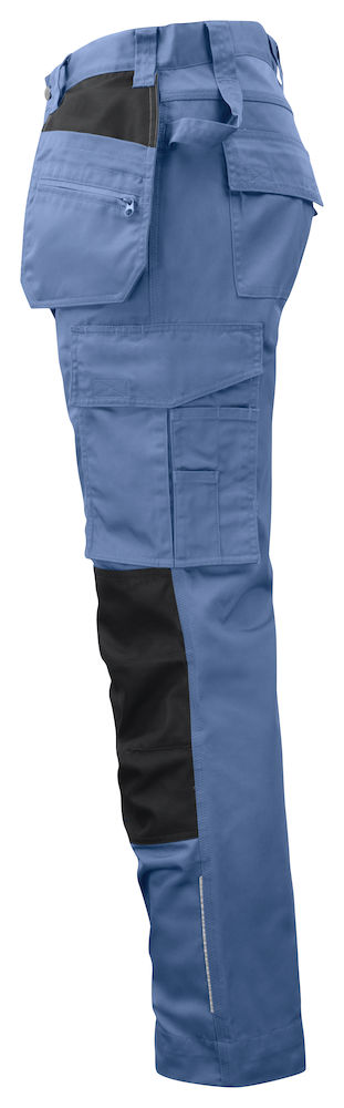 Helppohoitoiset polyesteri-puuvillahousut, jotka säilyttävät muotonsa ja värinsä. Riipputaskut, joissa lisätasku ja vetoketjullinen tasku. Läpälliset takataskut, joissa tarrakiinnitys. Läpällinen reisitasku, jossa lisätasku ja tarrakiinnitys. Mittatasku, jossa puukkonappi. Polvisuojat voidaan säätää kahdelle eri korkeudelle. Vahvikkeet riipputaskuissa, mittataskussa ja polvisuojataskuissa. Kokoja C42-C64 voidaan pidentää 5 cm.