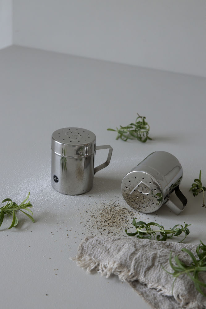 Kookas suola- ja pippurisetti. Sopii hyvin grillaukseen ja ulkokäyttöön, koska muovikorkit suojaavat mausteita kosteudelta.