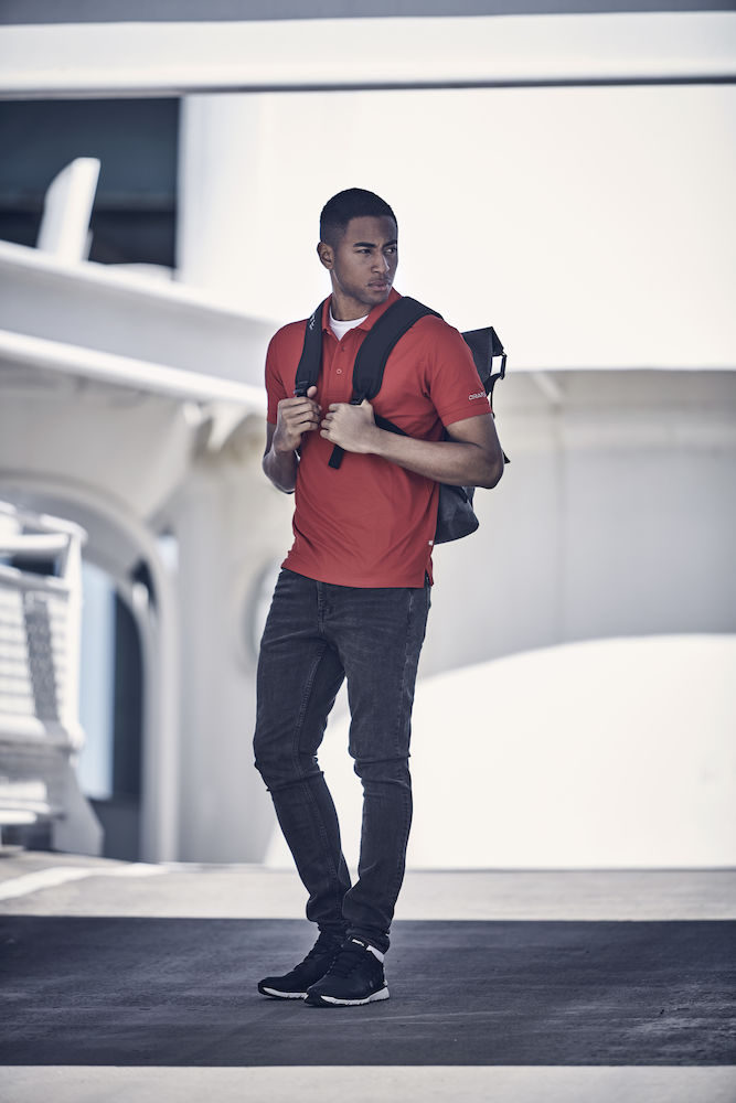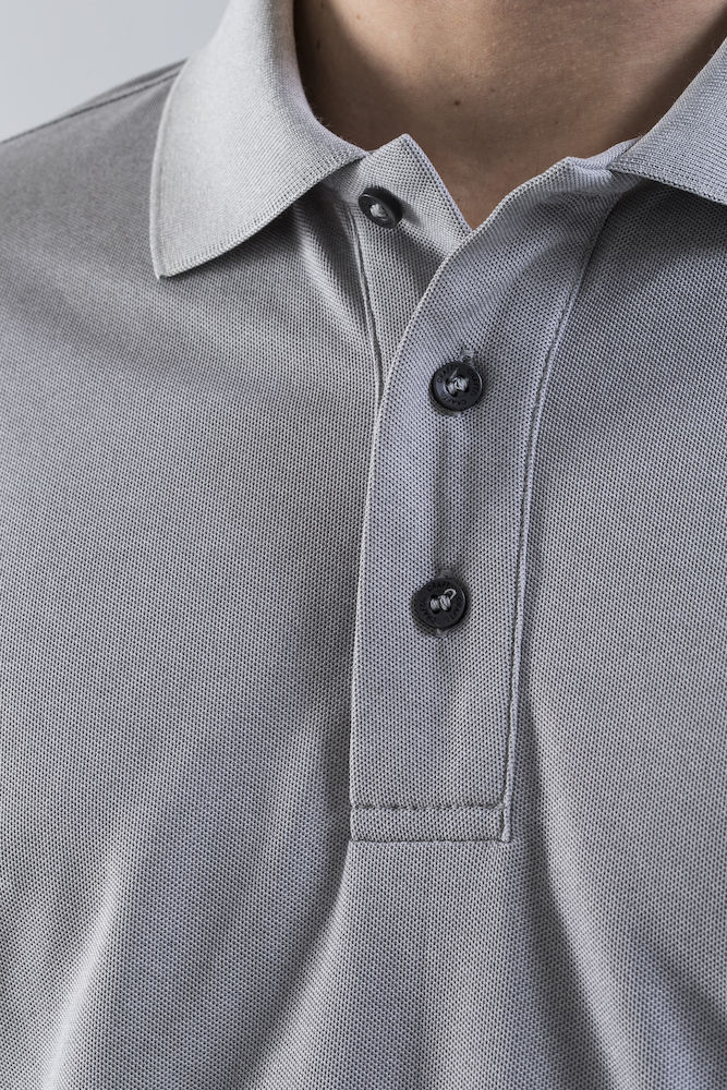 Klassinen, tekninen pikee. Nappilista. Siirtää tehokkaasti kosteutta. Brodeerattu logo hihassa.
