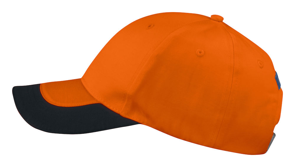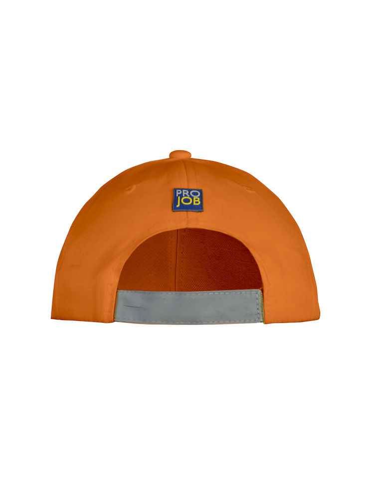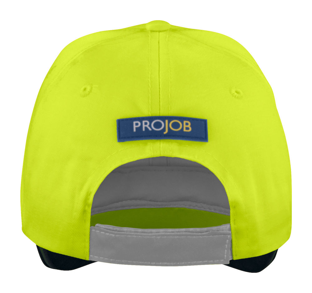 Turvallisuutta parantava huomiovärinen lippis jossa valmiiksi pyöristetty lippa sekä heijastava tarrasäätö takana.